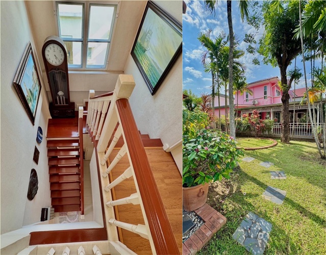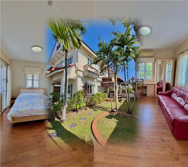 NongChom Intersection 2-storey detached house Land and House Maejo University 3.5km. Maejo Market 1.2 km. 3 bed 2 bath shady atmosphere garden around the house 58 sq.w.240 sq.m. 4 a/c fully furnished full set of electrical appliances for rent 18,499 B-M quiet private tourist attractions Lanna Garden Rama9 5.9km.