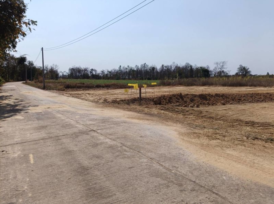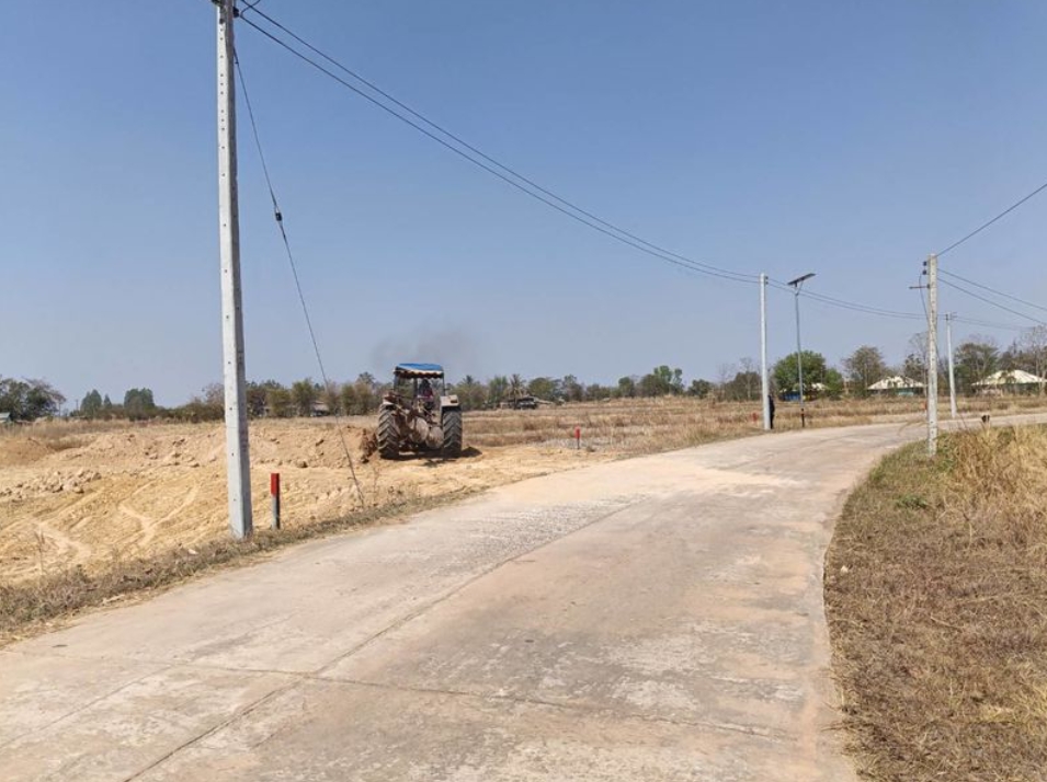 ที่ดินติดถนนคอนกรีต มีไฟฟ้า มีเพื่อนบ้าน มีไฟทางหน้าที่ดิน