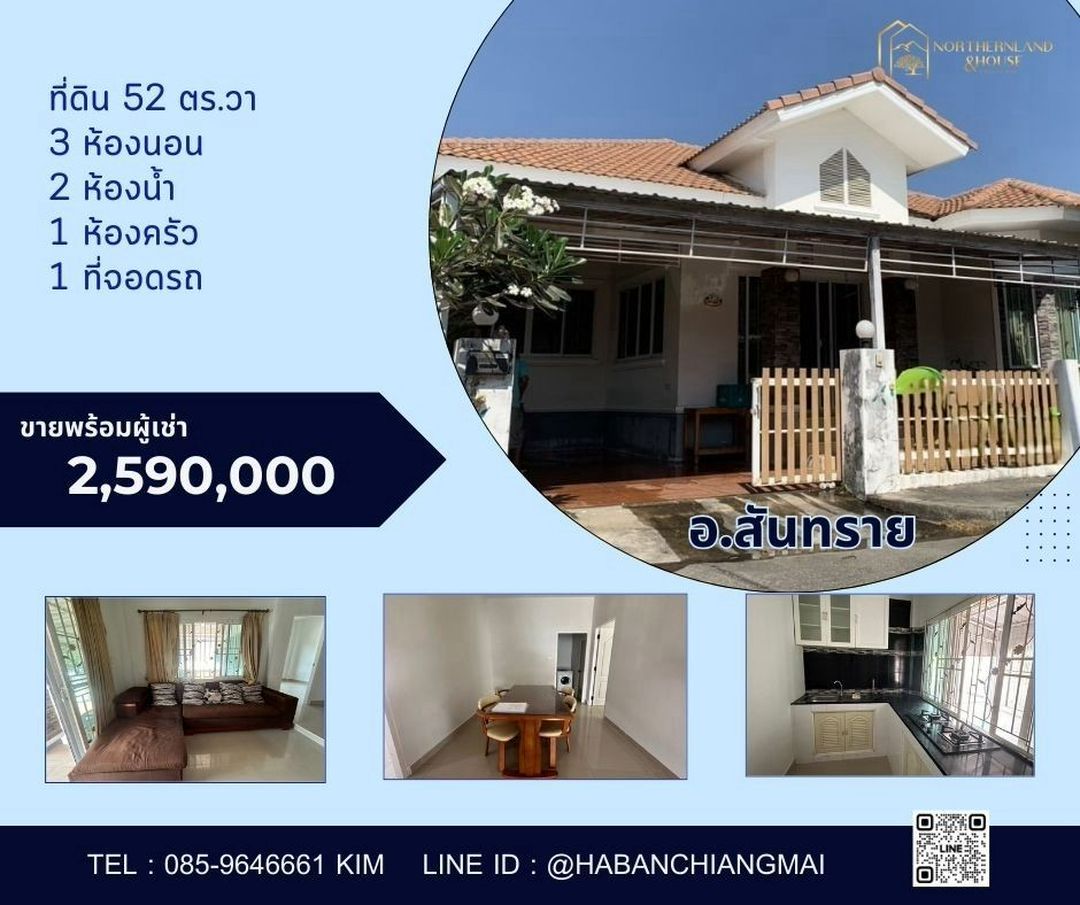 เจ้าของขายเอง #รับนายหน้า #ขายพร้อมผู้เช่า 2.59 ล้าน #โซนสันทราย ม.รุ่งเรือง บ้านสวย ทำเลดี #หนองจ๊อม #รับรายได้เดือนละ11,000 บาท (สัญญา 1 ปี) #ใกล้มีโชคพลาซ่า บ้านชั้นเดียว #ใกล้รวมโชค #รับปรึกษาฟรีบริการยื่นสินเชื่อธนาคาร