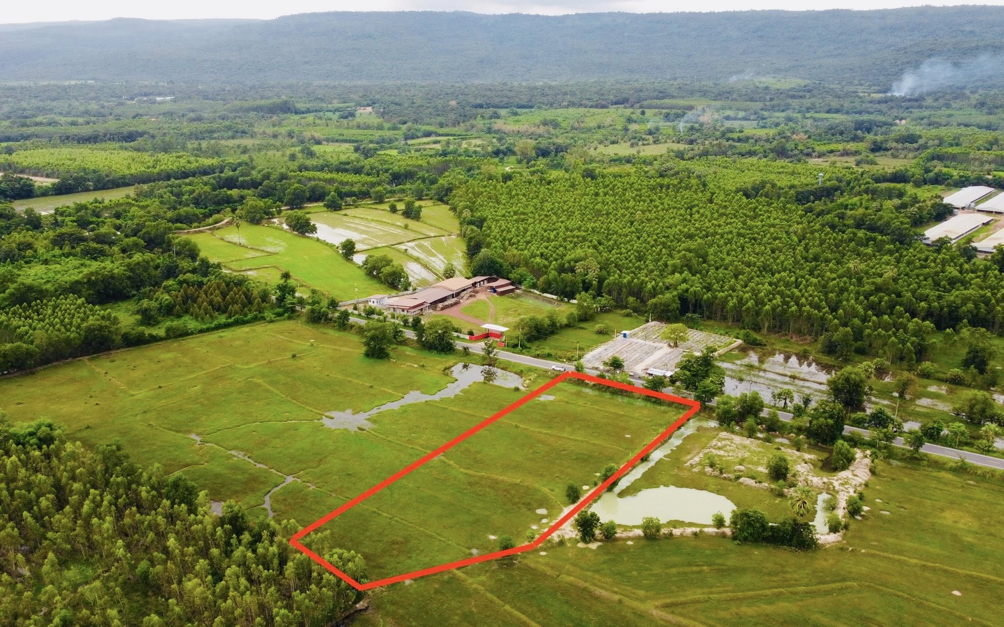 ขายที่ดินแปลงสวยๆ ติดถนนหลัก หน้ากว้าง 62 เมตร ลึก 140 เมตร พื้นที่ 6 ไร่ ทำเลดี บรรยากาศดี