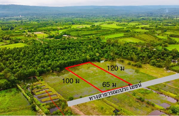 ขายที่ดินแปลงสวยๆ ติดทางสาธารณะ หน้ากว้าง 65 เมตร ลึก 120 เมตร พื้นที่ 4 ไร่