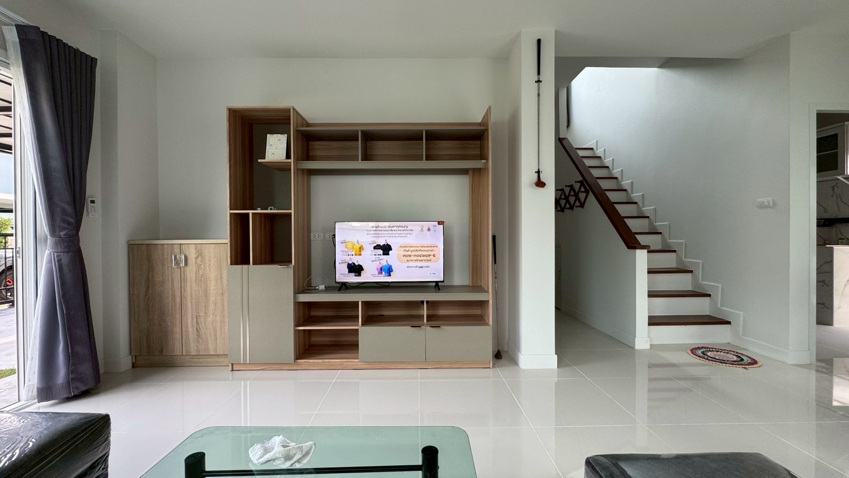 จอดรถ 2 คันพร้อมหลังคา จัดสวนพร้อมดูแลตัดหญ้า เฟอร์นิเจอร์ ผ้าม่าน