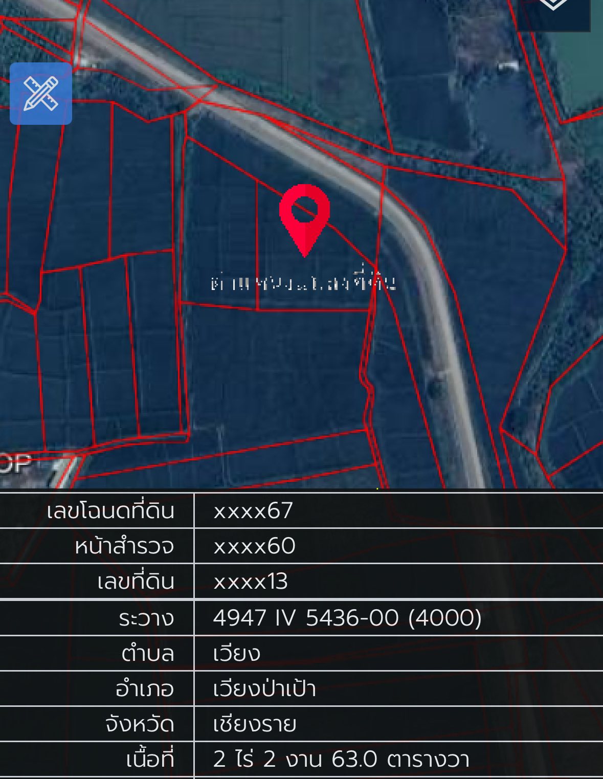 ดูข้อมูล ขาย ที่ดิน เวียงป่าเป้า จังหวัดเชียงราย ทั้งหมด