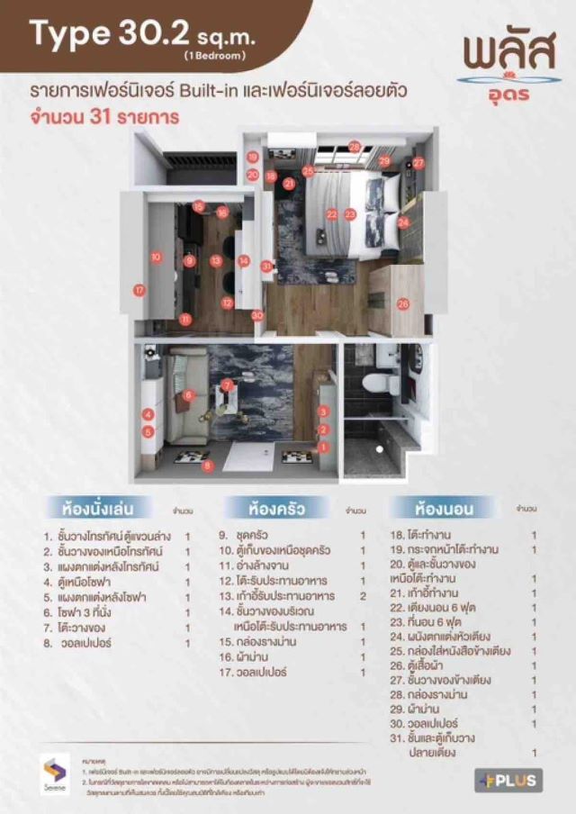 ชุดครัว เฟอร์นิเจอร์บิลท์อินและลอยตัวครบครัน 31 รายการ