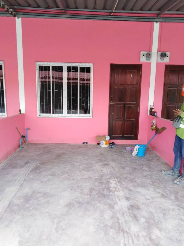 หน้าห้องพักตอนนี้เป็นถนนคอนกรีตแล้ว