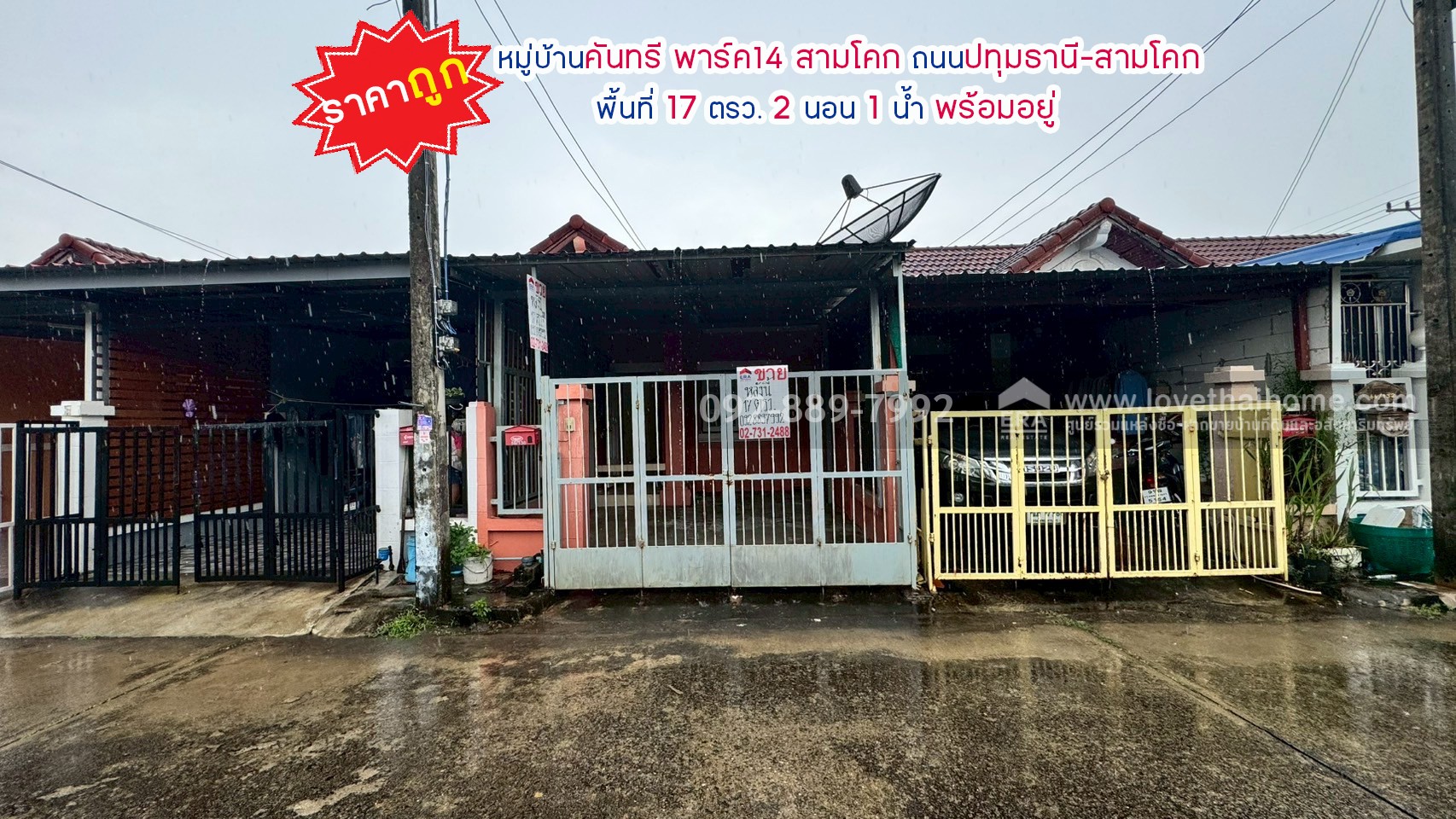 - ทาวน์เฮ้าส์ชั้นเดียว 17 ตรว. หมู่บ้านคันทรี พาร์ค14 สามโคก ซอยเทศบาล1 ถนนปทุมธานี-สามโคก ตัวบ้านตั้งอยู่ ซอย19 ในโครงการ