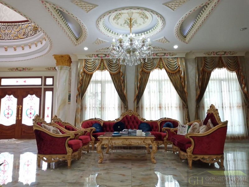 พื้นที่ใช้สอยคฤหาสน์กว่า 3,189 ตร.ม.: ทุกรายละเอียดของการตกแต่งภายในล้วนบ่งบอกถึงรสนิยมอันเป็นเลิศ ด้วยวัสดุและเฟอร์นิเจอร์ทั้งหมดที่คัดสรรและนำเข้าจากต่างประเทศ มอบความหรูหราที่สัมผัสได้ในทุกมุมมอง และผนังอาคารก่ออิฐ2ชั้นช่วยให้เย็นสบาย