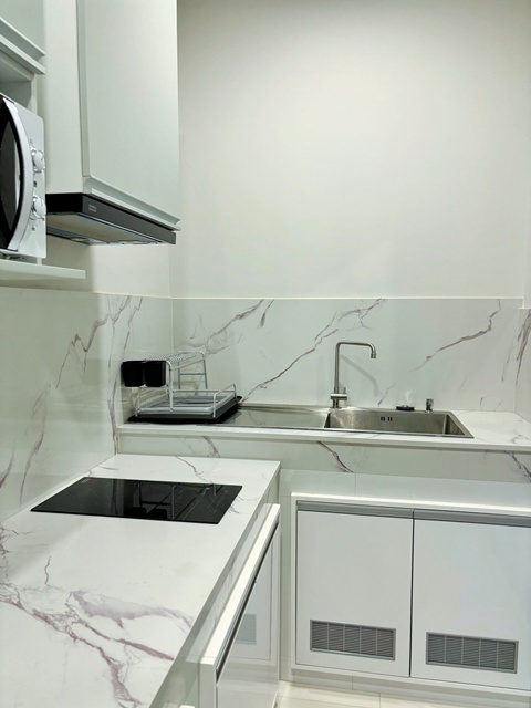 - ห้องครัวพร้อมอุปกรณ์ครบครันพร้อมเคาน์เตอร์หินอ่อน เตาประกอบอาหาร ไมโครเวฟ และบาร์อาหารเช้า