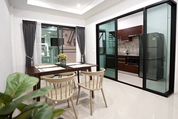 靠近The Mall Bangkapi购物中心的三层联排别墅出租,面积220平方米。