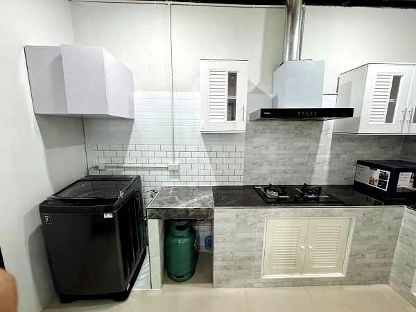ห้องครัว โซฟา เตาดูดควัน โต๊ะทานอาหาร ตู้เย็น เตียงนอน