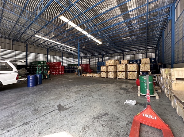 Fenced and walled, the warehouse is solidly built and strong. Includes 1 rai of land.Includes 1 office