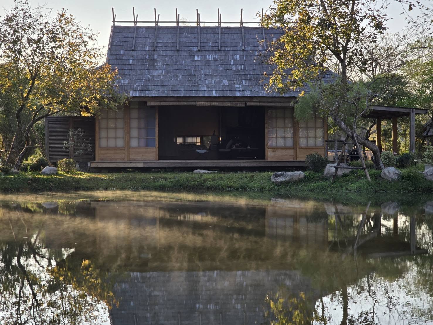 2. บ้านดินหลังคาไม้ไผ่ สไตล์ญี่ปุ่น ชั้นเดียว