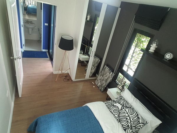 ห้องขนาด 47 ตรม. ตึก A ชั้น 1 เดินเข้ามาจากหน้าโครงการเป็นตึกแรกเดินไม่ไกล เป็นห้องมุมที่มองออกไปจะเห็นทางเข้าโครงการ รอบๆห้องมีต้นไม้ปลูกเป็นรั้วสวยงาม ห้องแต่งครบพร้อมเฟอร์นิเจอร์เข้าอยู่ได้เลยครับ