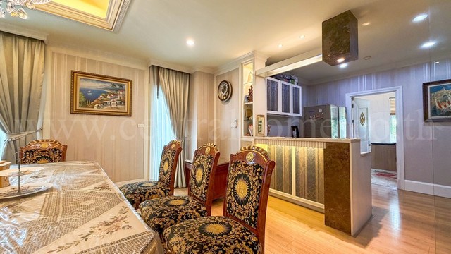 - 4 ห้องนอน, 5 ห้องน้ำ, 1 ห้องรับแขก, 1 ห้องรับประทานอาหาร, 1 ห้องครัวไทย, 1 ห้องครัวฝรั่ง, 1 ห้องแม่บ้าน, 2 ที่จอดรถ