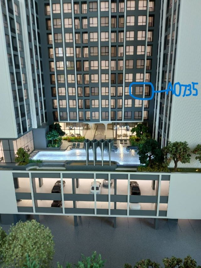 ห้องชุดเลขที่ A0735 ชั้น 7 ขนาด 26.6 ตร.ม. ทิศตะวันออก วิวสระ ห้องมุม Private