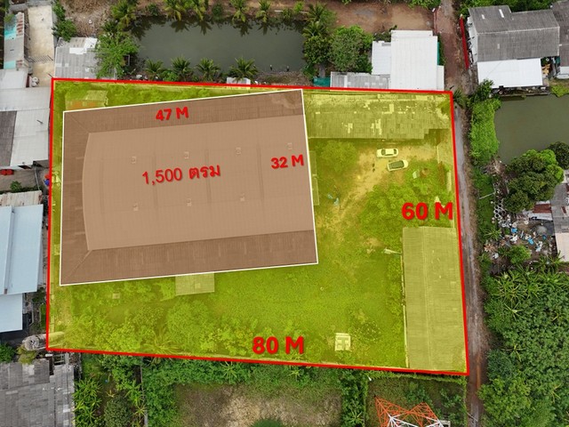 - พื้นที่ที่ดินขนาด 2-2-83 ไร่ กว้าง 60 x 80 M ติดถนนกว้าง 7 M