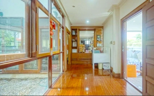 พื้นไม้สักหน้ากว้าง ประตูหน้าต่างวงกบไม้สัก กระจกเจียปี บิลท์อินทั้งหลัง