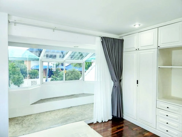 Two-story corner house for rent in a prime location, Ramkhamhaeng 110-112, near MRT Sammakorn (200 meters). The house sits on a 64 sq.wa plot with a usable area of 260 sq.m. It features 2-3 bedrooms and 3 bathrooms, fully furnished and suitable for both residential and business use. It's close to Stamford International University (3 km) and offers convenient transportation. The community is well-appointed and offers a quality living environment. It's also 2.3 km from Ban Ma intersection and directly on Ramkhamhaeng Road. Rent is 26,998 THB per month.