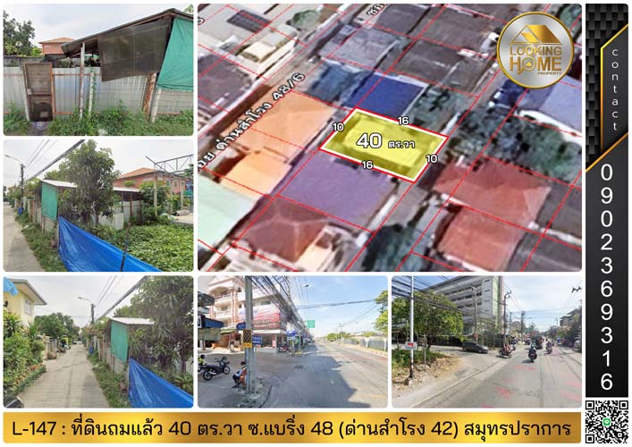 - ที่ดินถมแล้ว 40 ตร.วา รูปแปลงสวย กว้าง 10 เมตร ลึก 16 เมตร
