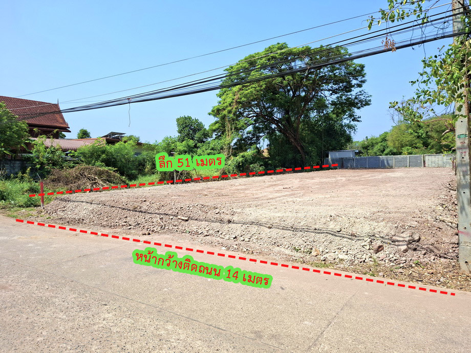 - ขนาดที่ดิน 180 ตร.วา รูปสี่เหลี่ยมผืนผ้า ที่ถมสูง หน้ากว้าง 14 ม. ลึก 51 ม.