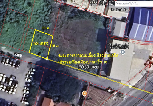 ขายที่ดิน ซอยเลี่ยงเมืองปากเกร็ด18 ถนนเลี่ยงเมืองปากเกร็ด ถนนแจ้งวัฒนะ ตำบลบางพูด อำเภอปากเกร็ด นนทบุรี