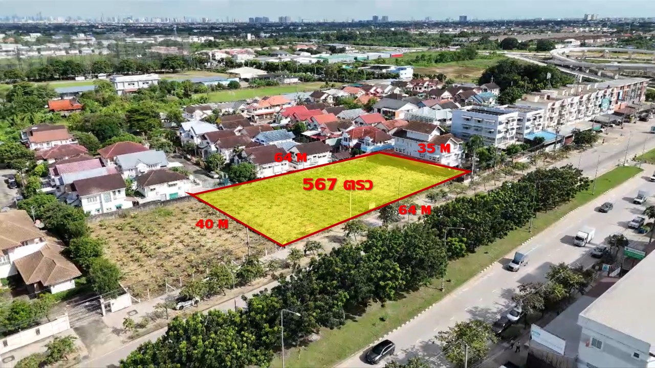 - ที่ดิน 1-1-67 ไร่ หรือ 567 ตรว ติดถนน 6 เลน