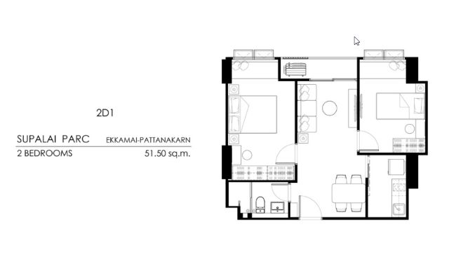-แบบ 2 ห้องนอน ขนาด 51.5 ตร.ม.